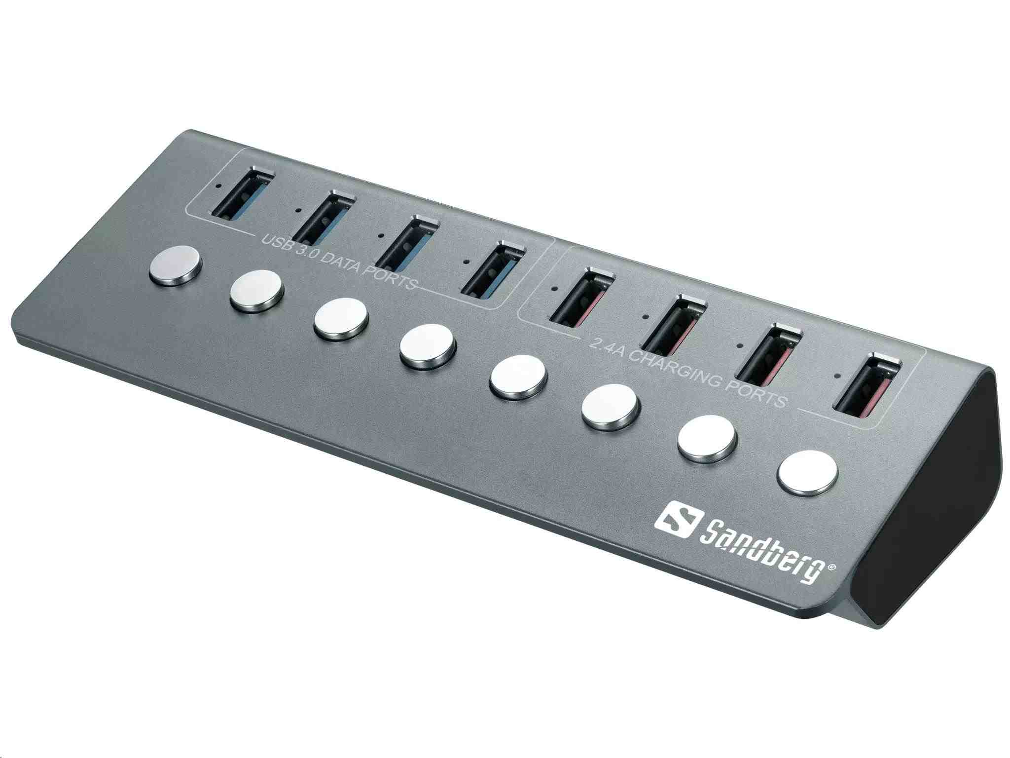 Díky Sandberg USB 3.0 Hub 4xData + 4xCharge získáte dvě výkonná zařízení sloučená do jednoho. Získáte 4 datové porty USB 3.0 pro připojení USB zařízení k vašemu počítači, například myš, klávesnice, tiskárna a externí paměť. Navíc získáte 4 nabíjecí konektory pro nabíjení chytrých telefonů a tabletů. Součástí je výkonný zdroj napájení pro zajištění plného výkonu. Skvělé pro domácí nebo kancelářské použití.