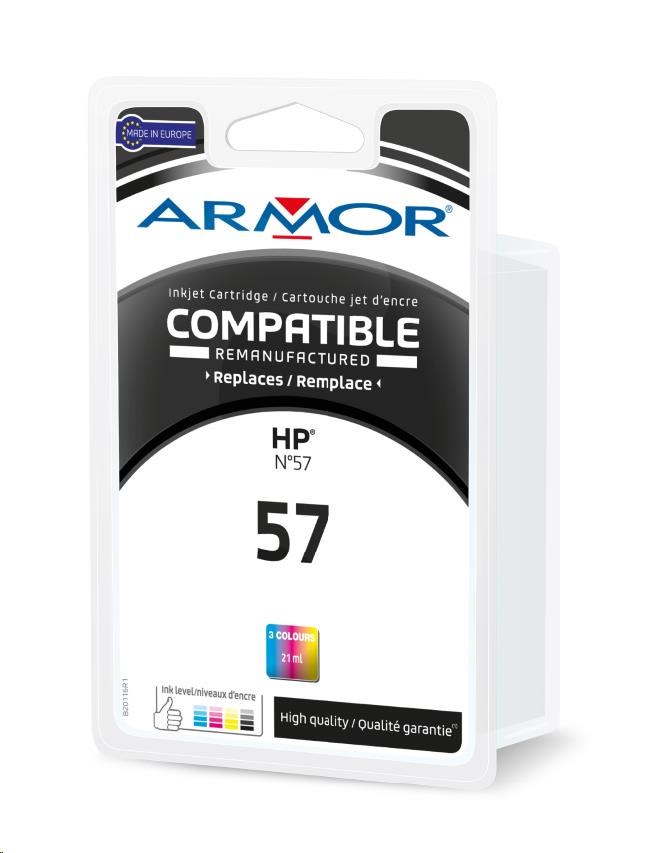 Tříbarevná(3 barvy) náplň ARMOR B20116R1 (C6657A) pro tiskárny Hewlett Packard Deskjet 450ci, 450cbi, 5150, 5550, 5652, 5850, 9650, 9670, 9680, , Photosmart 100, 130, 145, 230, 245, 7150, 7260, 7350, 7550, 7660, 7760, 7960, OfficeJet 4110, 4255, 5510, 6110, PSC 1110, 1210, 1215, 1315, 1350, 2110, 2175, 2210, 2410 photosmart, 2510 ph. Obsah 21ml