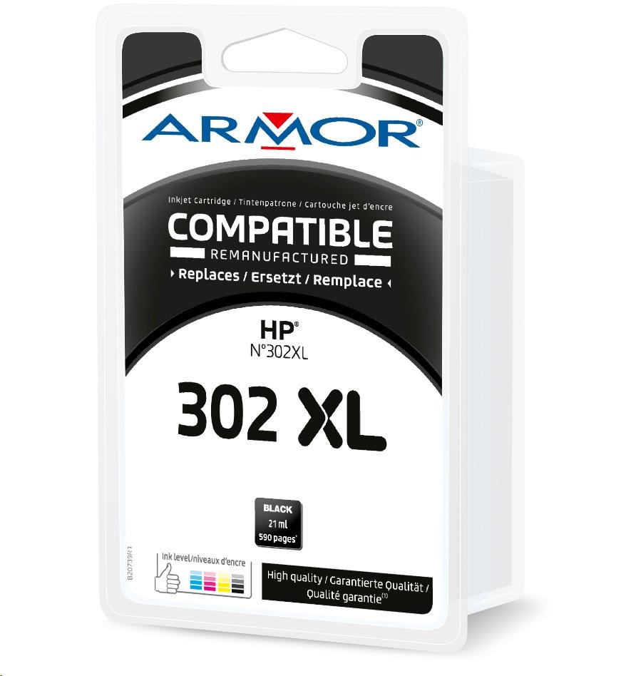 ARMOR cartridge pro HP OJ 3830,3834,4650, DJ 2130,3630,1010, Envy 4520, černý 21 ml, 895 str., No.302XL, F6U68AE