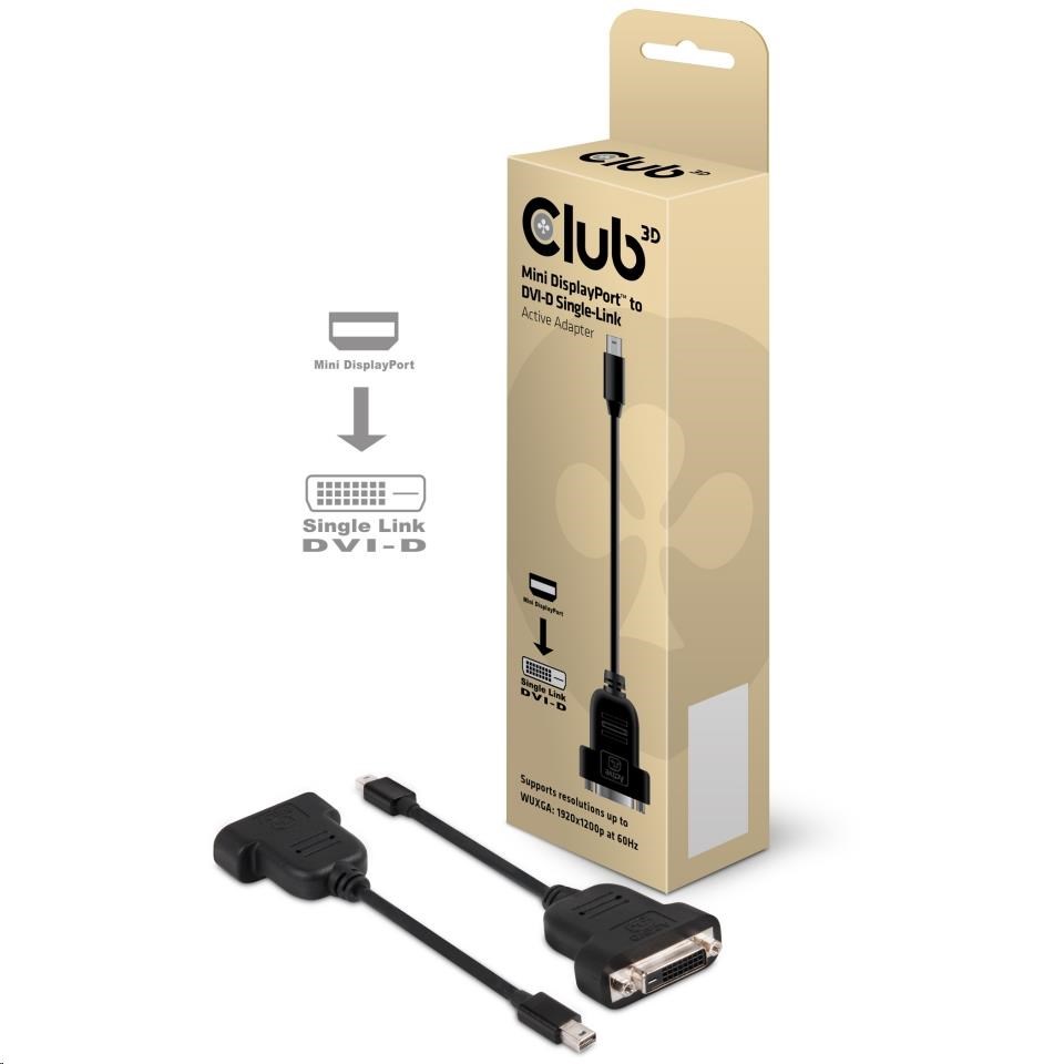 Club 3D CAC-1152 je aktivní převodník signálu DVI-D. Adaptér Mini DisplayPort ™ na DVI-D je nejjednodušším řešením pro připojení stolního nebo přenosného počítače s technologií Mini DisplayPort ™ k televizoru, monitoru nebo projektoru s rozhraním DVI-D.