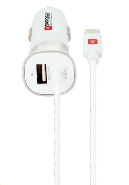 SKROSS USB Car Charger & Type-C nabíjecí autoadaptér, integrovaný kabel + 1x USB výstup navíc, 5400mA max.