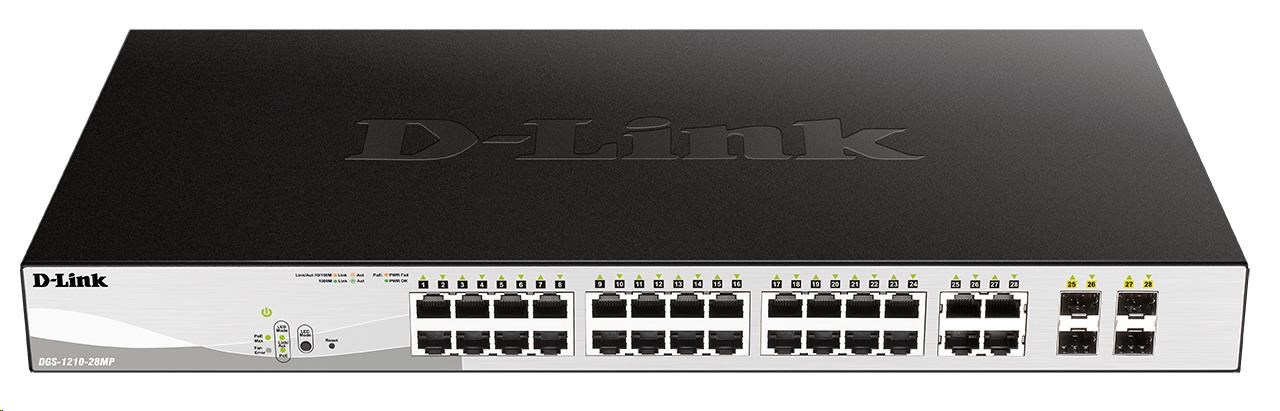 28-portový gigabitový PoE+ inteligentný prepínač vrátane 4 portov SFP - rozpočet na napájanie 370 W - 24 x PoE+ 10/100/1000 Mb/s - 4 x SFP porty s automatickým vyjednávaním - port 1-24 802.3at do 30 W - pokročilé funkcie úspory energie - Half-/Full-Duplex, automatické vyjednávanie, Auto MDI/MDIX - IEEE 802.3x Flow Control - 802.3ad Link Aggregation - Asymetrická VLAN - Hlasová VLAN - Jumbo rámec 9 216 bajtov - Prepínacia kapacita 56 Gb/s - 802.prioritné fronty 1p. - Veľkosť tabuľky MAC adries 16k - Statické MAC adresy 256 - Statické multicastové adresy 64 - Filtrovanie MAC/IP - ACL 200 pravidiel na báze MAC/IP (Port List) - 802.1X port-base Access Control, Port Security - LLDP, LLDP-MED, Smart Binding, Traffic Segmentation - konfigurácie IPv6 - D-Link Safeguard Engine - Smart Console Utility, webový manažment, kompaktné CLI - DNA utility - 19" Rackmount inštalácia - IEEE 802.3az EEE.