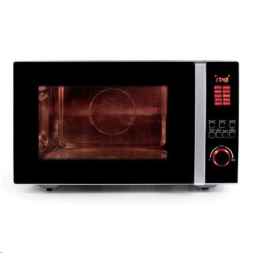 Objem: 42 l 3-v-1: Mikrovlny: 1000 W Gril: 1300 W Horký vzduch: 2700 W (140oC až 230oC) 10 programů vaření: pizza, brambory, maso, ryby, zelenina, nápoje, těstoviny, popcorn, koláče a kuře Digitální časovač se signálem konce ohřevu Rozmrazování podle váhy, nebo času Bezpečnostní zámek dveří XL skleněný talíř: průměr 34,5 cm V balení i drátěný rošt na grilování (pozor: jiný než na obrázku otevřené trouby, tento je pouze ilustrační, rošt je jednostranný a nemá silikonové nožičky) Vnitřní povrch: hladký nerez Vnitřní rozměry trouby: hloubka: 38 cm šířka otvoru: 37 cm výška otvoru: 23,5 cm výška po topné těleso: 22,5 cm čistá výška mezery mezi talířem a topným tělesem: 21,5 cm Intervaly nastavování času ohřevu: 0-1 min: 5 s 1-5 min: 10 s 5-10 min: 30 s 10-30 min: 1 min 30-95 min: 5 min Rozměry balení (š x h x v): 61,9 x 58,2 x 38,3 cm Rozměry přístroje (š x h x v): 56 x 57 x 33 cm Hmotnost: 23,8 kg Příkon: 1000W - 1300W - 2700W