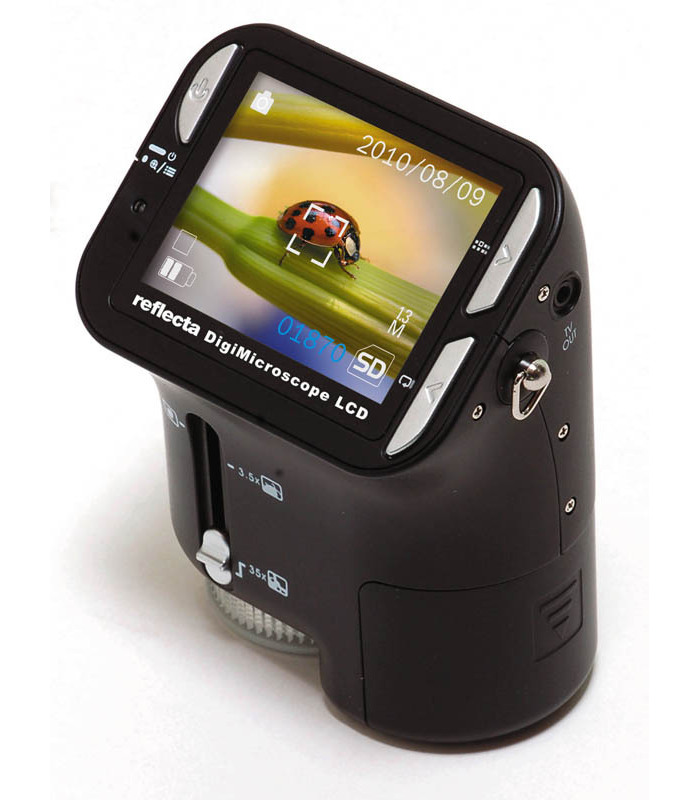 DigiMicroscope LCD (1,2 Mpx, až 140x zvětš., práce i bez PC pomocí barevného LCD, SD slot, 2xAA, USB). Mikroskop s připojením pomocí USB na PC, foto/video záznam - zobrazení a další úpravy na počítači.