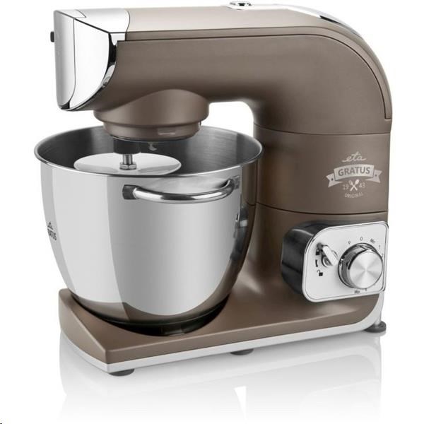 Funkce a příslušenství robota: hnětení; krájení; mísení; mixér; strouhání; šlehání Planetární systém míchání: ANO Objem hlavní nádoby (l): 5.5 Ovládání: mechanické-knoflíkové Počet rychlostí: 8 Pulzní spínač: ANO Plynulá regulace rychlosti: ANO Příkon robota (W): 1200 Materiál nádoby: nerez Značka kvality dTest: NE Retro: NE Provedení výrobku: titanium Tento elegantní kuchyňský robot Gratus Original ETA002890030 disponuje výkonným motorem s příkonem 1200W, který zvládne i vysoké zatížení. Můžete s ním uhníst těsto, šlehat, míchat, mixovat, strouhat i krájet. Spolehlivě připraví suroviny pro dokonalý výsledek vašeho vaření. I proto patří Gratus mezi nejprodávanější kuchyňské roboty od roku 2013. Disponuje planetárním systém míchání, který kvalitněji a systematičtěji zpracovává obsah nádoby a dokonale tak připraví těsto pro všechny vaše dobroty. K tomu přispívá i prodloužená část šlehacího nástavce, která zachytí suroviny až u stěn nerezové mísy a zpracuje tak celý obsah nádoby. S příslušenstvím můžete míchat kynutá těsta, těsta na dortové piškoty, palačinky a lívance, krémy, polevy i pomazánky, umixujete si koktejly, dresinky i krémové polévky a nastrouháte zeleninu i ovoce na přílohy a saláty. Bezpečnost a použití Jeho provedení je celokovové. Díky tomu je robot odolnější, stabilnější a má delší životnost. Plynulá regulace otáček usnadňuje jeho obsluhu a spolu s bezpečnostními pojistkami proti špatnému nastavení a světelnou signalizací provozu zajistí bezpečný průběh celého procesu. Jeho velkou výhodou je jednoduchá a rychlá montáž, výměna příslušenství i snadná údržba. Jednotlivá příslušenství lze mýt v myčce na nádobí, což vám ušetří spoustu času i energie. Ke Gratus robotu lze dokoupit mlýnek na maso, mlýnek na mák, nástavce na výrobu domácích těstovin, nástavec na krájení kostiček nebo dokonce lis na ovoce. S tímto doplňkovým sortimentem zvládnete připravit nejrůznější pokrmy všech světových kuchyní. Další rozšíření pestré škály funkcí nabízí praktický brousek nožů, se kterým pohodlně a bezpečně nabrousíte nerezová i ocelová ostří. ETA na tento produkt poskytuje prodlouženou záruku 10 let na motor. Kuchyňský robot * Nejprodávanější robot roku 2013, 2014 a 2015 v kategorii kuchyňských robotů a kategorii kuchyňských spotřebičů sloužících k přípravě jídla * Velmi výkonný 1200W motor se stabilizátorem udržuje nastavené otáčky i při velkém zatížení * Masivní celokovové provedení (včetně převodovky) zajišťuje dlouhou životnost a dobrou stabilitu při provozu * Planetární systém míchání pro kvalitnější a systematičtější zpracování obsahu nádoby * Plynulá regulace otáček pro volitelnou rychlost a intenzitu zpracování surovin * Funkce PULSE pro maximální otáčky * Možnost nastavení výšky nástavců pro práci s menším množství surovin v nádobě * Otvor v krytu pro snadné plnění surovin za chodu * Inovativní šlehací nástavec s prodlouženou pracovní částí zajistí efektivnější promíchání surovin i u stěn mísy v celé její výšce * Bezpečnostní systém výkyvného ramene: • Umožňuje snadnou výměnu pracovních nástavců • Obsahuje bezpečnostní pojistku proti nechtěnému spuštění v odklopené poloze • Usnadňuje manipulaci díky aretační pojistce při odklopené poloze * Protiskluzové nožky zajišťující stabilitu * Praktický, tichý a účinný pomocník * Velmi rychlé sestavení pracovních nástavců, jednoduché ovládání a snadná údržba * Možnost mytí jednotlivých nekovových dílců v myčce na nádobí * Deklarovaná hladina akustického výkonu 82 dB(A) re 1pW * Hmotnost samostatného kuchyňského robota bez jakéhokoliv příslušenství je 7,6 kg V základní výbavě disponuje robot těmito funkcemi: * šlehání * mísení * hnětení * mixování * strouhání, krájení Příslušenství: * Velkokapacitní nerezová mísa o objemu 5,5 l, včetně průhledného krytu (až 2,5 kg těsta) * Skleněný mixér 1,4 l (nepohlcuje pachy a barvy mixovaných potravin) * Nástavec na strouhání (se 3 diskovými struhadly) + převodovka pro zajištění optimálních otáček * Hnětací hák * Šlehací metla * Mísící metla