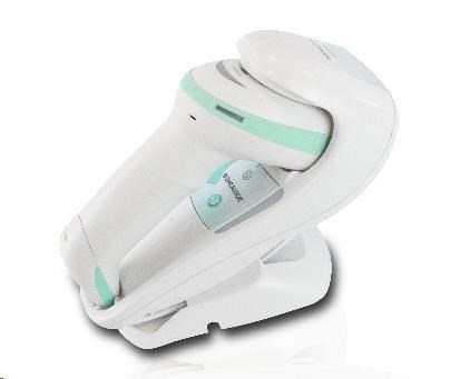 bezdrôtový skener, zdravotníctvo, 2D, zobrazovač, zelený bod, 3GL, dezinfikovateľný kryt, bezdrôtový, 433 MHz, IP52, vrátane.: kábel (USB, priamy, 2 m, biely), nabíjacia/prevádzková kolíska, batéria, 3250 mAh, farba: biela.