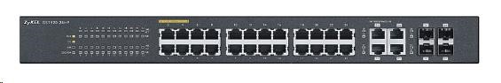 28portový Gigabit WebManaged switch: 24x Gigabit metalických portů + 4x Gigabit combo porty (metal/SFP), PoE 802.3at (High Power, 30W) - maximální zatížení PoE 375W, IPv6, 802.3az (Green), Layer 2-4 bezpečnostní nastavení, L2 Multicast, do 19" racku