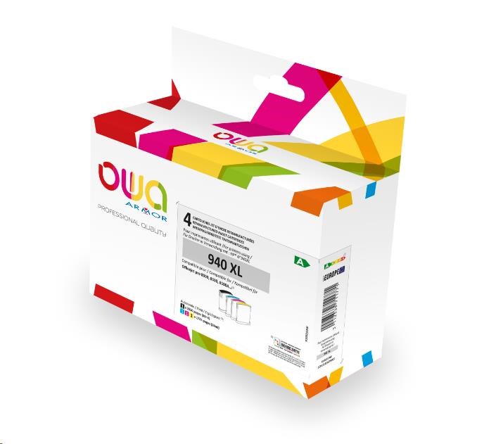 OWA Armor cartridge pro HP PACK 4 REMAN. 940XL BCMY, 69ml/3x24ml/2650p/3x1735p,C4906AE/C4907AE/C4908AE/C4909AE,black+CMY