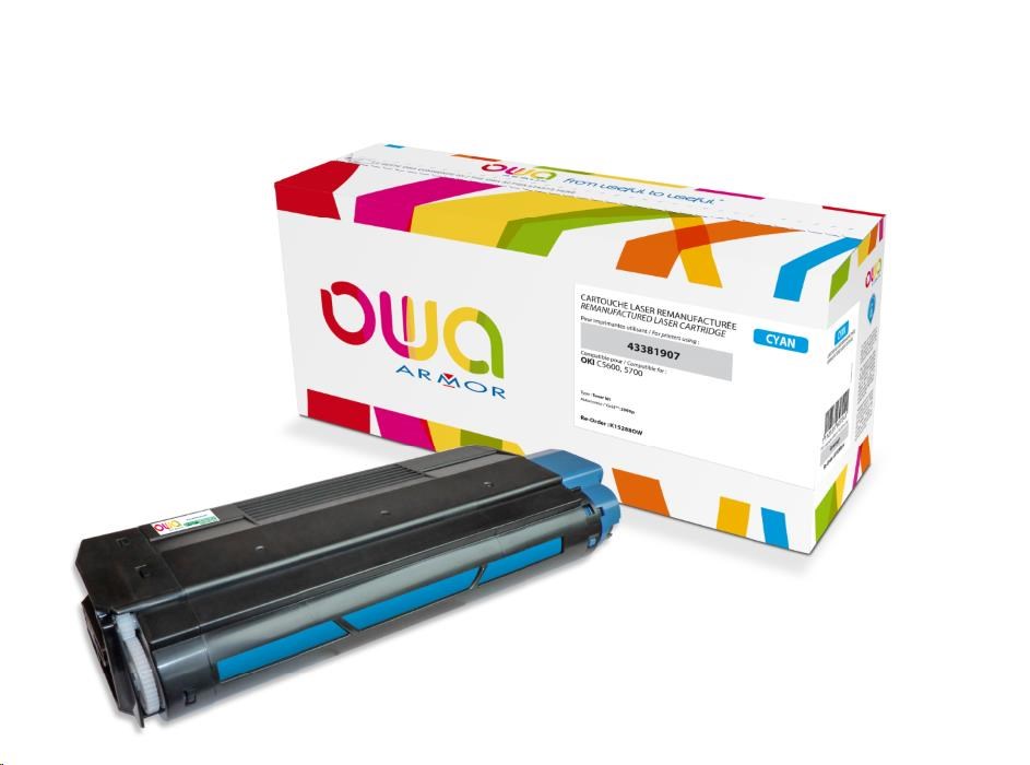 OWA Armor toner pro OKI C5600, C5700, 2000 Stran, 43381907, modrá/cyan