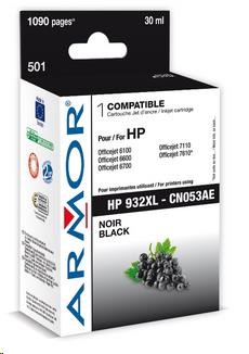 Černá náplň ARMOR K20425 (CN053AE) s obsahem 30 ml, pro tiskárny Hewlett Packard Officejet 6100, 6600. Kapacita 1 090 stránek.