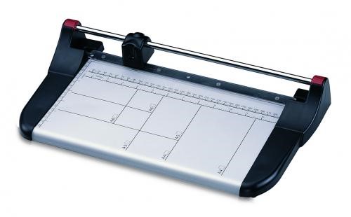 Kolečková řezačka s pevnou kovovou základnou určena pro řezánípapíru do formátu A4. Maximální tloušťka řezu 0,7 mm. Rotační nůžz nerezové tvrzené oceli. K dipozici jako náhradní díl - náhradní řezná hlava. Délka řezu:33 cm. Přítlak stohu: automatický. Rozměry pracovní desky: 21× 33 cm.Hmotnost: 1,22 kg.