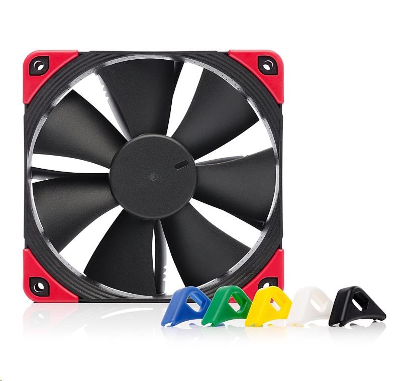 ventilátor, tichý, rozměry 120x120x25mm, hlučnost 18.6 až 22.4dB, průtok 74.3 až 93.4 m3/h, 300 až 1500 otáček, optimalizovaná geometrie a povrch 7 lopatek, SSO2, edice Chromax - vyměnitelné barevné antivibrační podložky