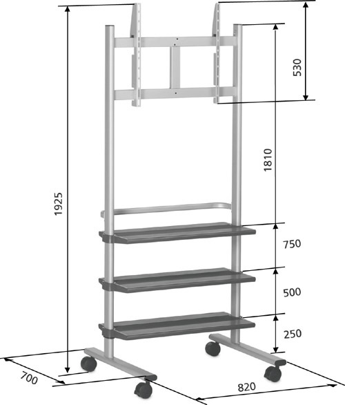 PB 175 Professional Pojízdný lehký stojan pro LCD a plazmy Pojízdný stojan pro instalaci LCD/plazem na výstavách, ve školách apod. *madlo pro snadnou manipulaci *4 velká kolečka, 2 s brzdou *3 poličky pro příslušenství *univezální adaptér pro uchycení LCD/plazmy *rychlá a snadná montáž * výška 1925mm *nosnost 50kg