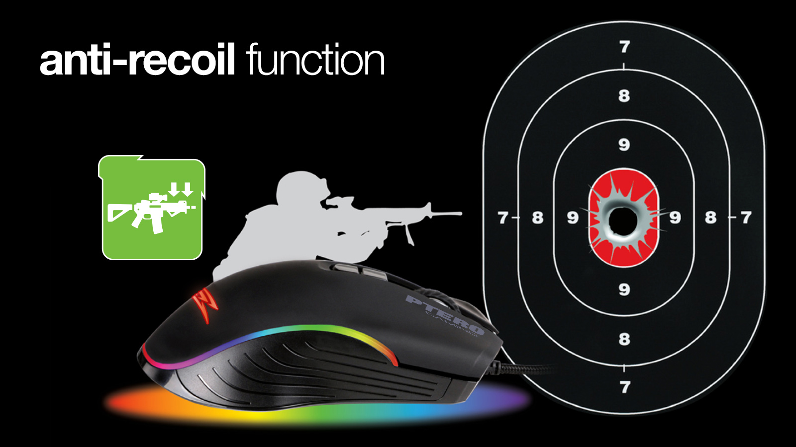 Myš disponuje "Anti-Recoil" funkcí, takže v akčních hrách vyrovnává zpětné rázy zbraní a vaše muška bude přesnější než kdykoliv před tím.