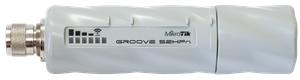 Groove 52HPn OVERVIEW MikroTik‘s smallest outdoor series model - a fully featured wireless RouterBOARD powered by RouterOS. Weatherproof, durable and ready to use. It has one 10/100 Ethernet port with PoE support and a built in wireless radio. It has software selectable 2 or 5GHz wireless mode, and high 500mW output power! With the Nv2 TDMA technology, up to 125Mbit aggregate throughput is possible! It has a built-in N-male connector, and pole attachment points, so you can attach it to an antenna directly, or use a standard antenna cable. LED signal indicators make it easy to install and align. Box contains: Groove unit, mounting loops, PoE injector, power adapter