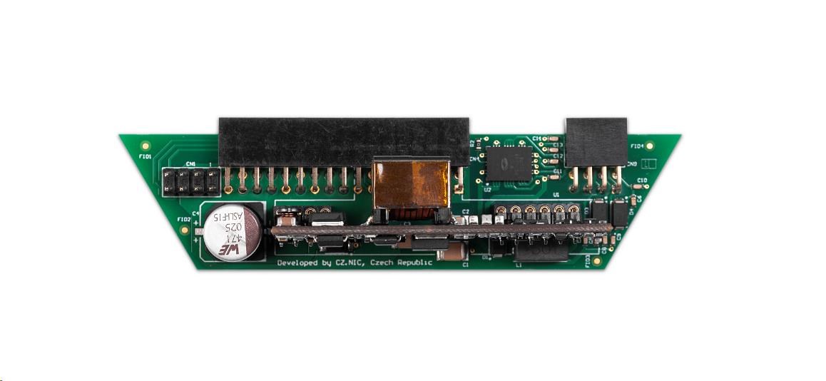 MOX PoE add-on umožňuje napájení routeru Turris MOX po ethernetu, bez nutnosti přivést napájecí napětí k zařízení dalším samostatným kabelem. Připojuje se k modulu MOX A (Basic) obsaženému ve všech MOX sestavách. Splňuje IEEE standardy 802.3at a 802.3af.