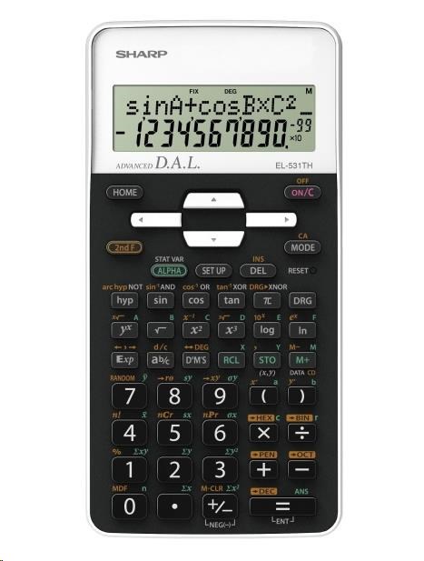 Vědecký kalkulátor EL-531TH obsahuje 273 matematických funkcí a je vhodný zejména pro studenty středních škol. Přehledný 2řádkový displej umožňuje procházení a editaci předchozích výpočtů, pevný plastový kryt chrání kalkulátor před poškrábáním a pády.
