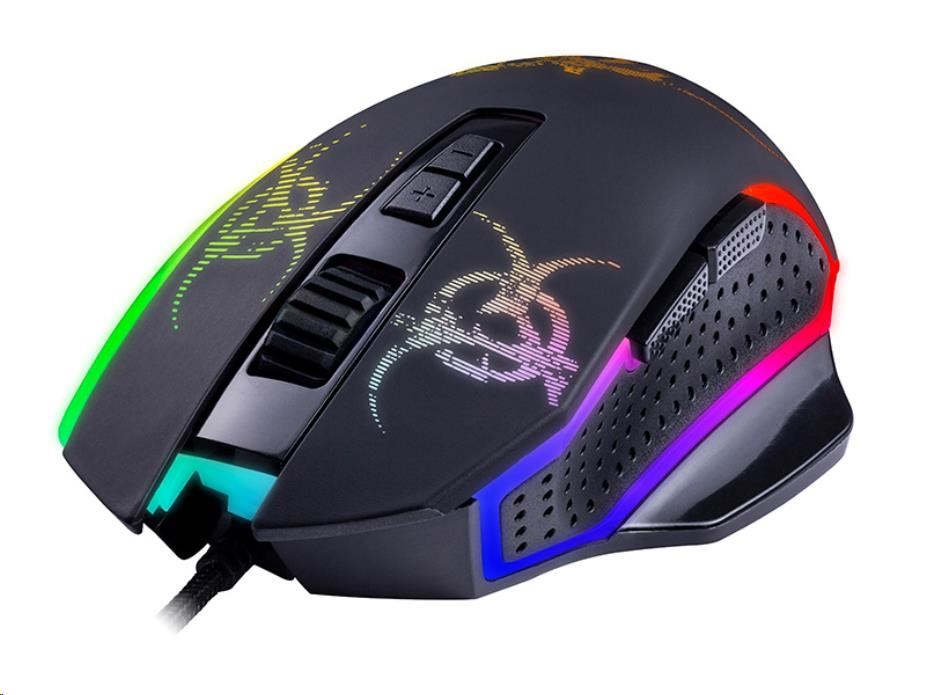 Check all the colour combinations given by the rainbow RGB backlight. The silent click mechanism and interesting illumination will make every nighttime gameplay more enjoyable. The e-sport character of the mouse as well as ergonomic and durable construction will provide comfort during long hours of gaming sessions.