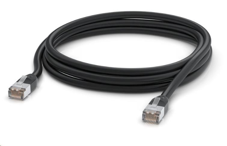 Odolný venkovní patch kabel UniFi je navržen tak, aby fungoval v těch nejdrsnějších podmínkách. Kabel je třídy Cat.5e s délkou 3m, typ stínění STP, má vnitřní stínění fólií a vestavěný svodový drát ESD – vše je zapouzdřeno v izolačním materiálu odolném proti povětrnostním vlivům a je zakončena stíněnými konektory RJ45 na obou stranách.